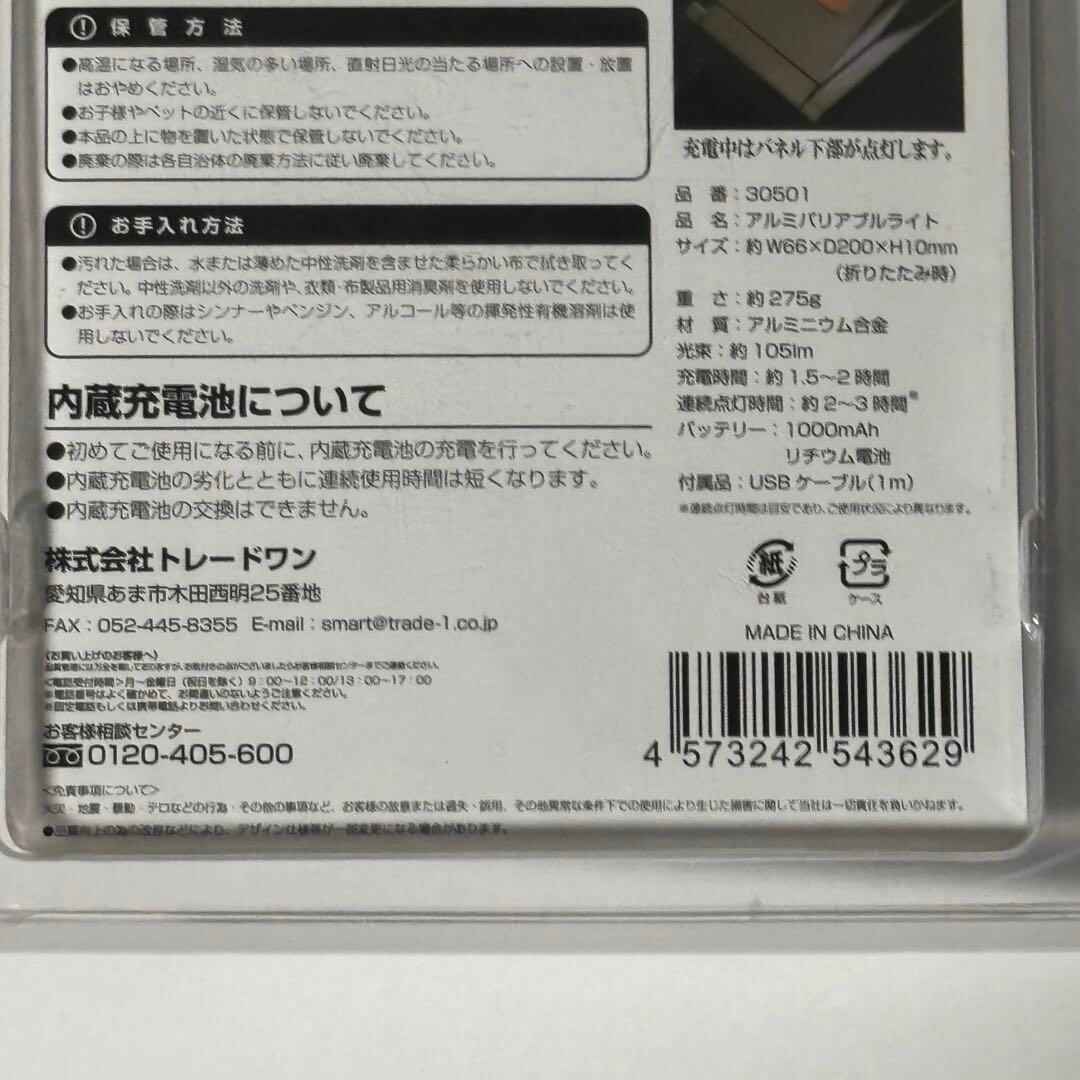 ●光速:105lm、充電時間:約1.5~2時間、連続点灯時間:約2~3時間、バッテリー1000mAh、リチウムイオンバッテリー