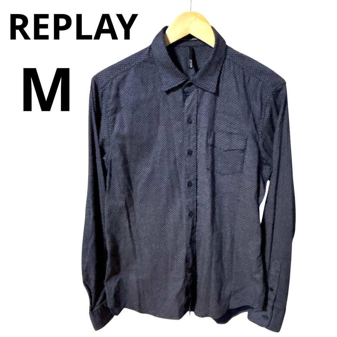REPLAYリプレイネイビー 長袖シャツ Mサイズ