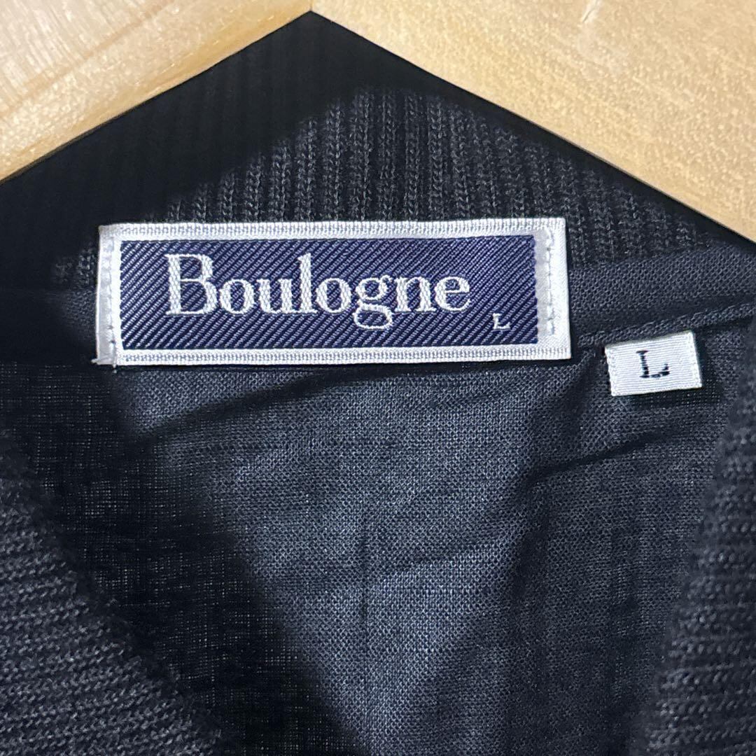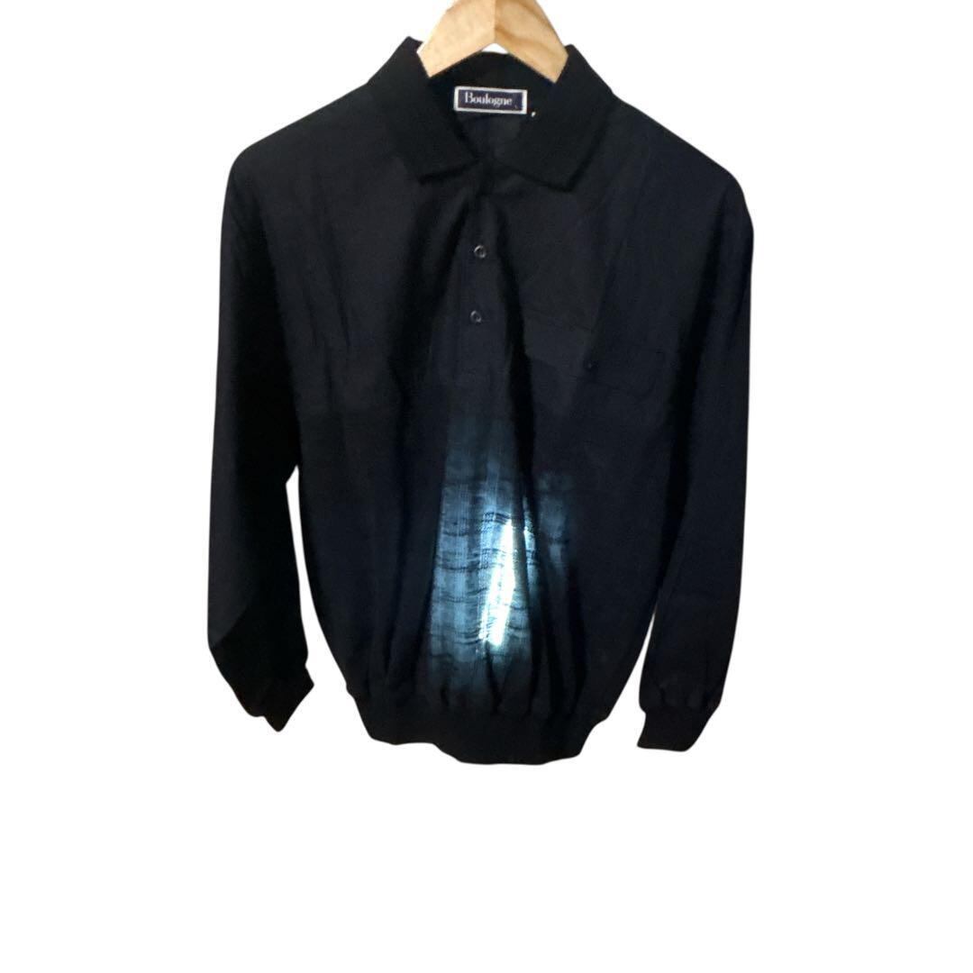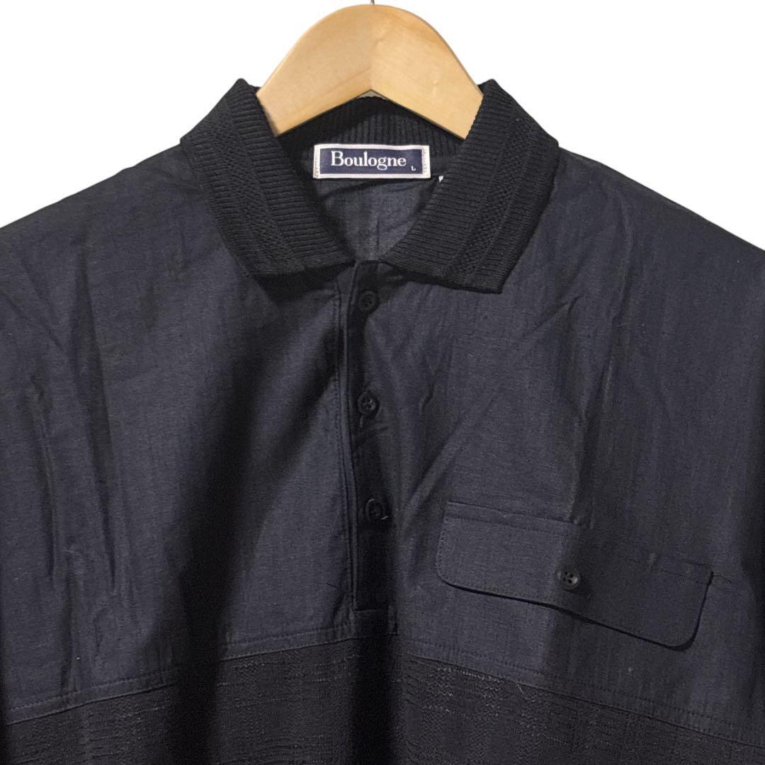 Boulogne ニット×麻 長袖 ポロシャツ L 昭和レトロ 日本製 ブラック