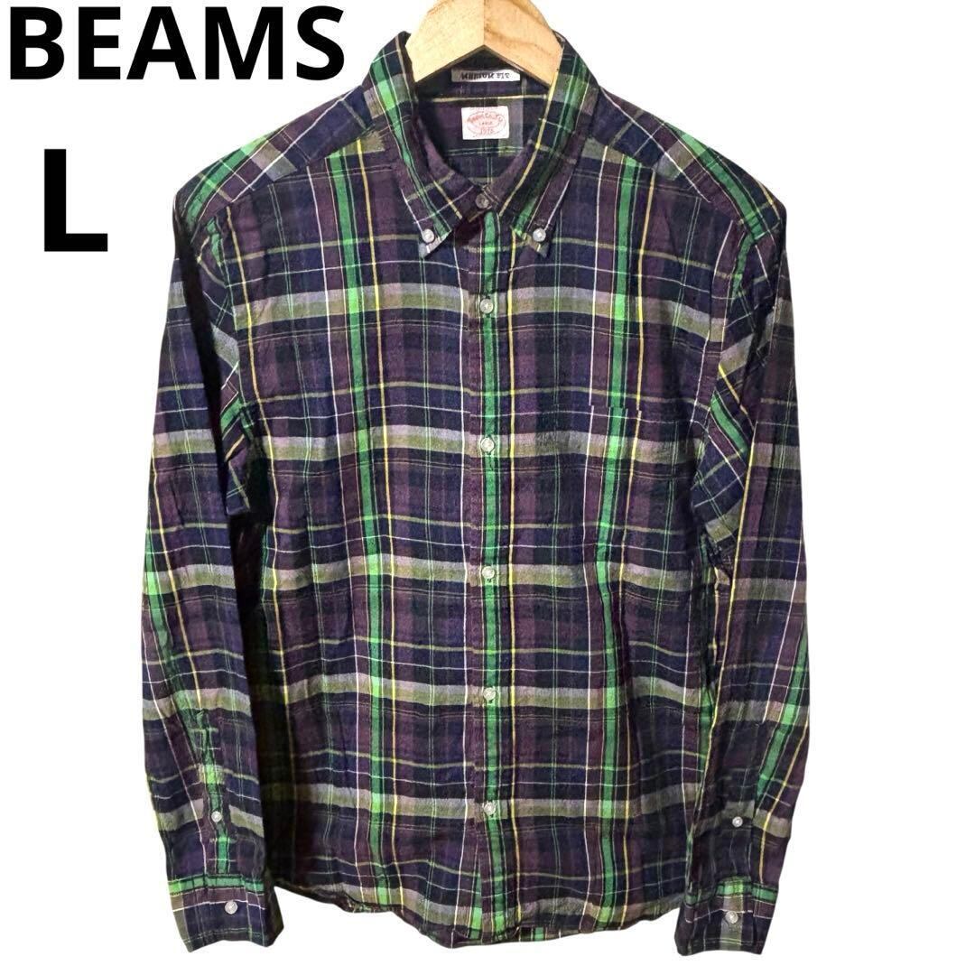 BEAMS ビームス チェックシャツ 日本製 長袖 ボタンダウン Lサイズ