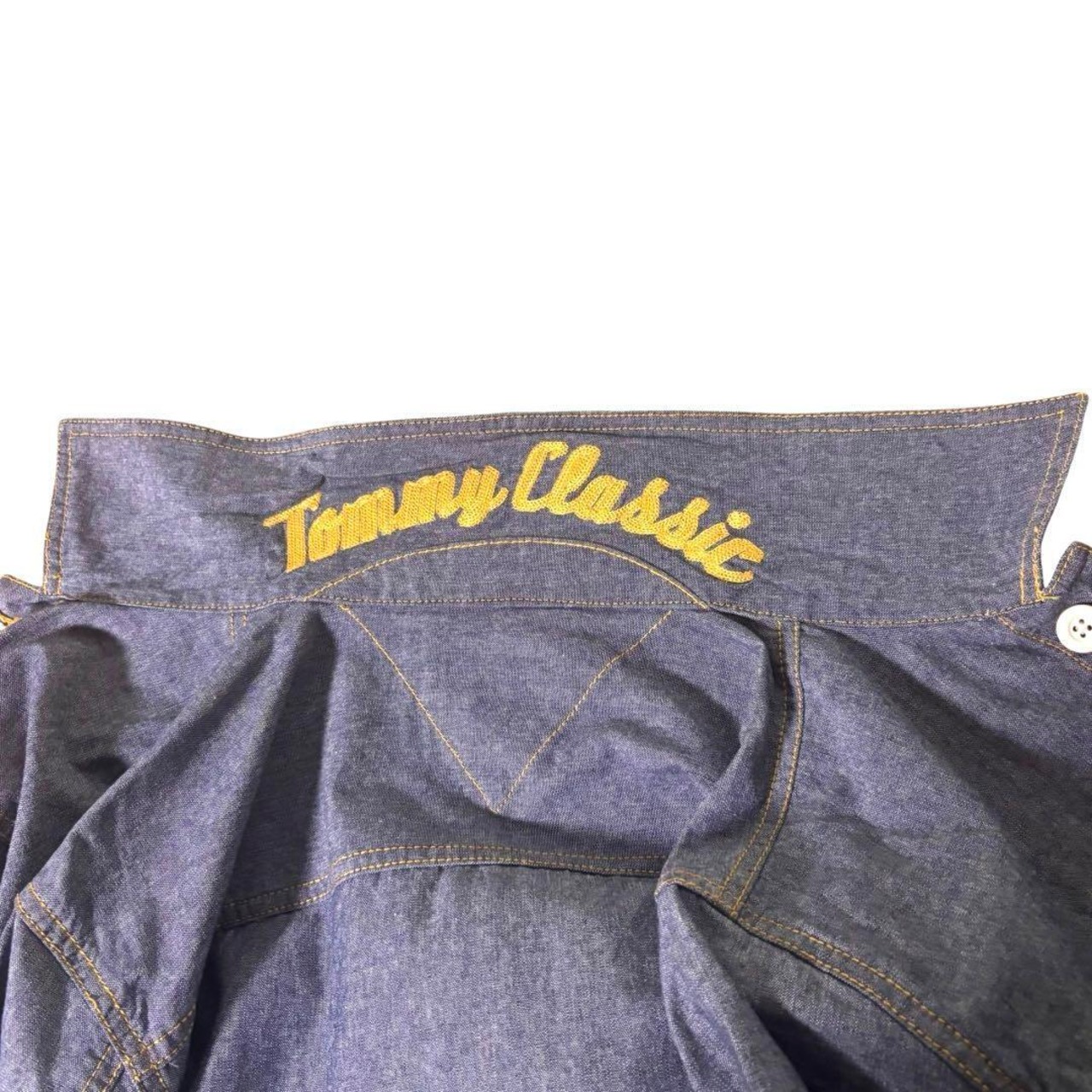 TOMMY デニムシャツ 刺繍 XL トミーヒルフィガー 七分袖