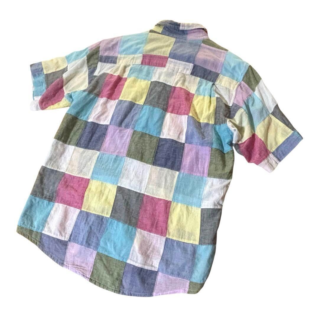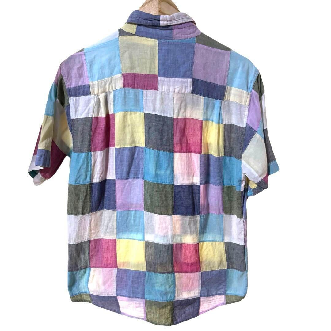 ビームス パッチワーク チェック柄 半袖 シャツ Beams インド製 綿100% アメカジ 古着