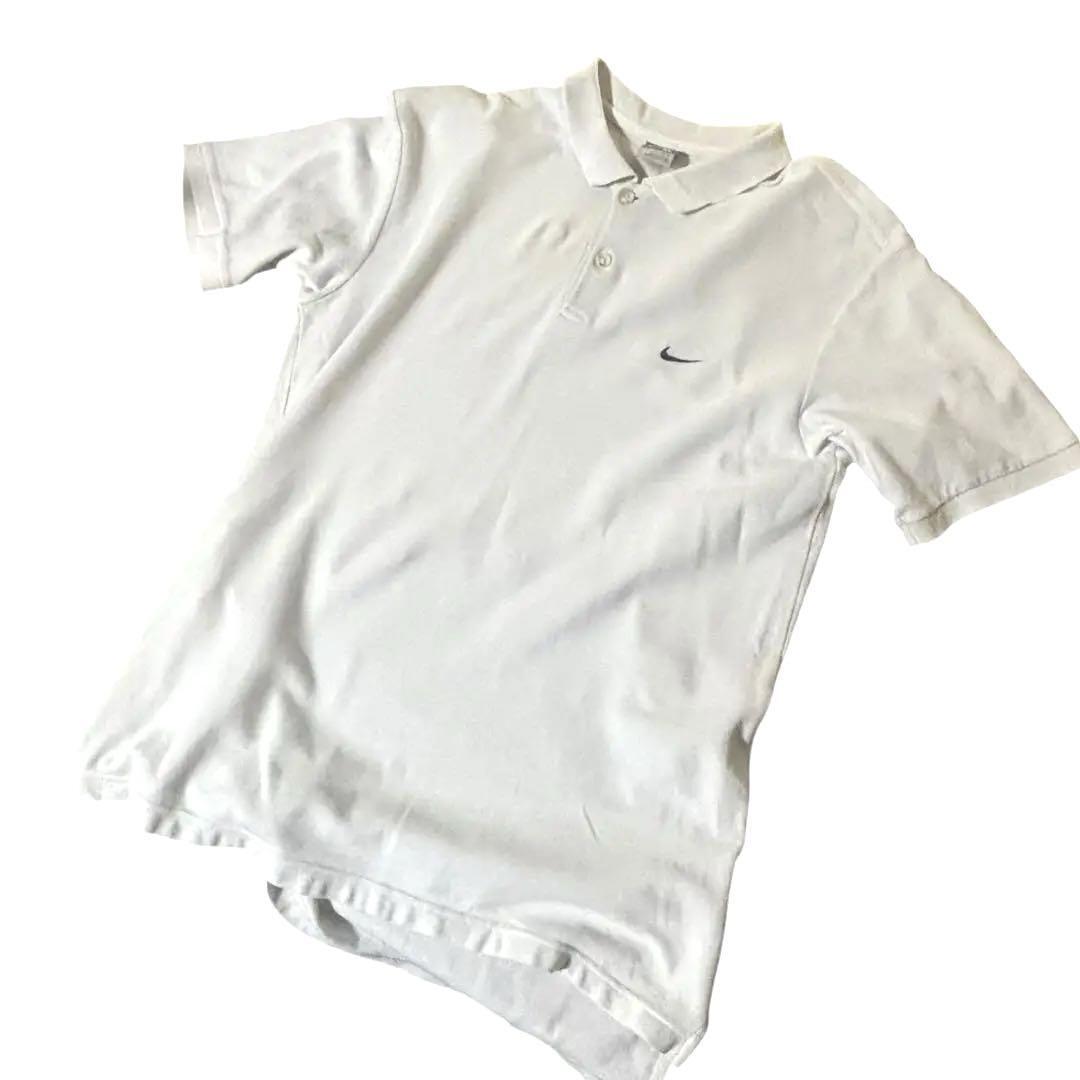 NIKEナイキ 半袖ポロシャツ ロゴ刺繍入り 無地 白 XL