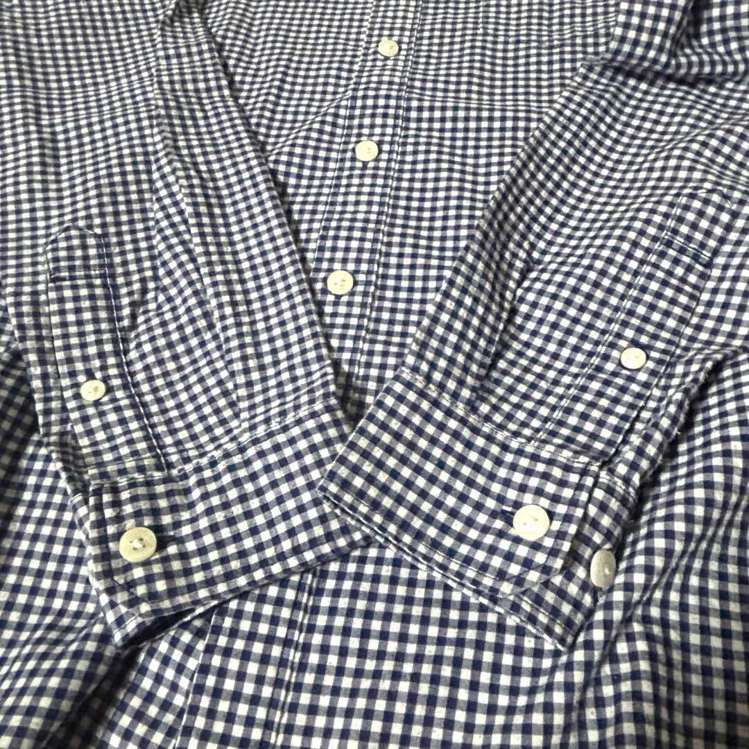 ネイビーとホワイトのギンガムチェックデザインの長袖シャツです。