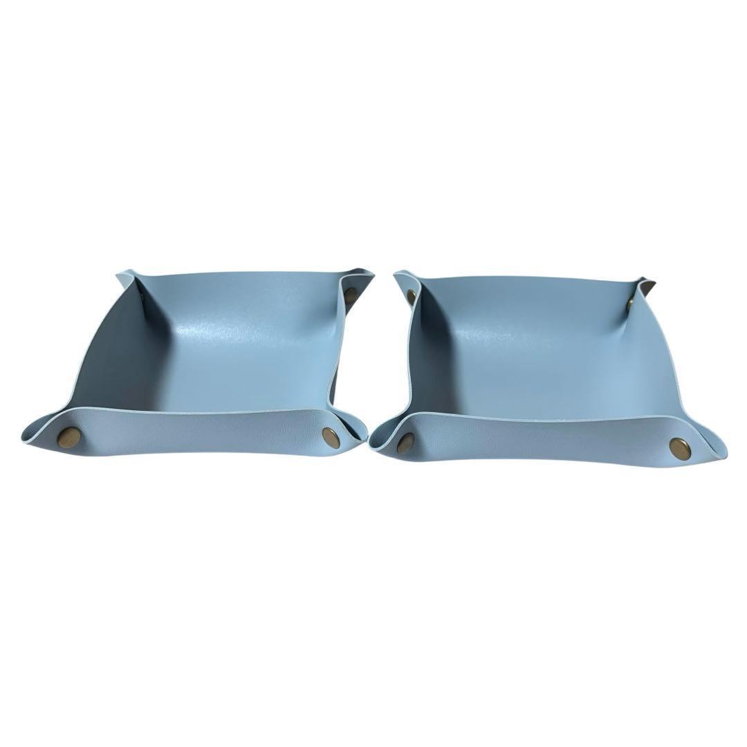 レザー調 トレイ 二個セット 水色 キャッシュトレイ カルトン 小物入れ インテリア