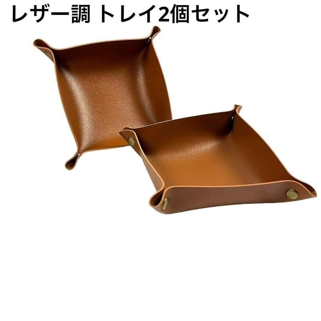 レザー調 トレイ 二個セット ブラウン キャッシュトレイ カルトン 小物入れ インテリア