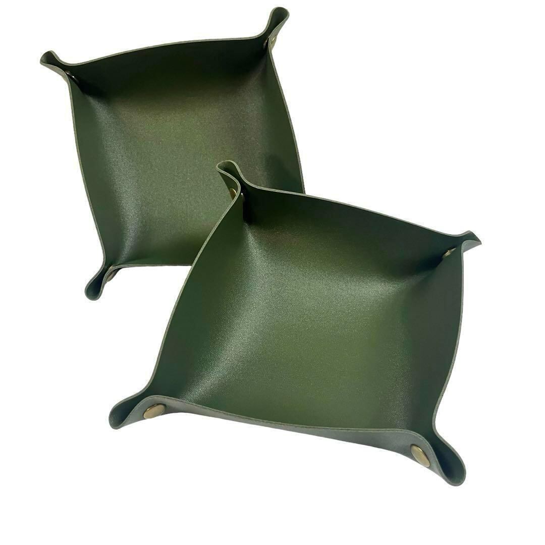 レザー調 トレイ 二個セット グリーン キャッシュトレイ カルトン 小物入れ インテリア