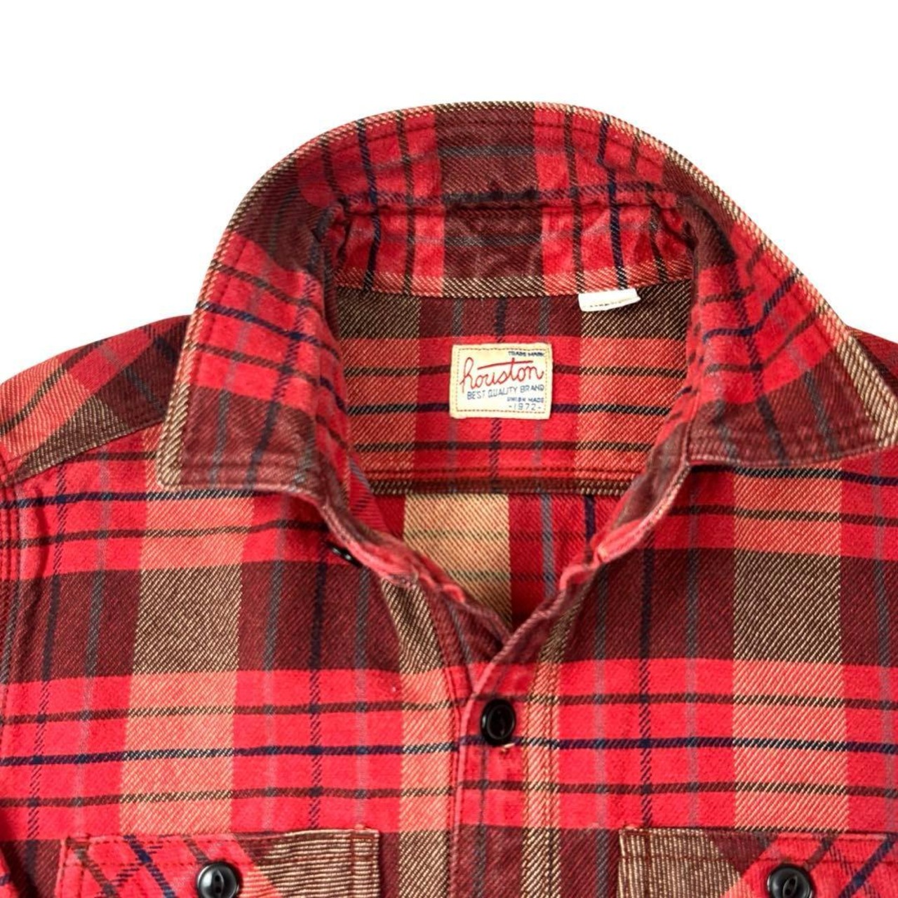 HOUSTON ヒューストン ネルシャツ 赤×茶色 チェック柄 長袖シャツ M